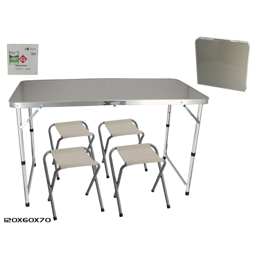 MESA PLEGABLE + 4 SILLAS 120X60X70CM CAMPING