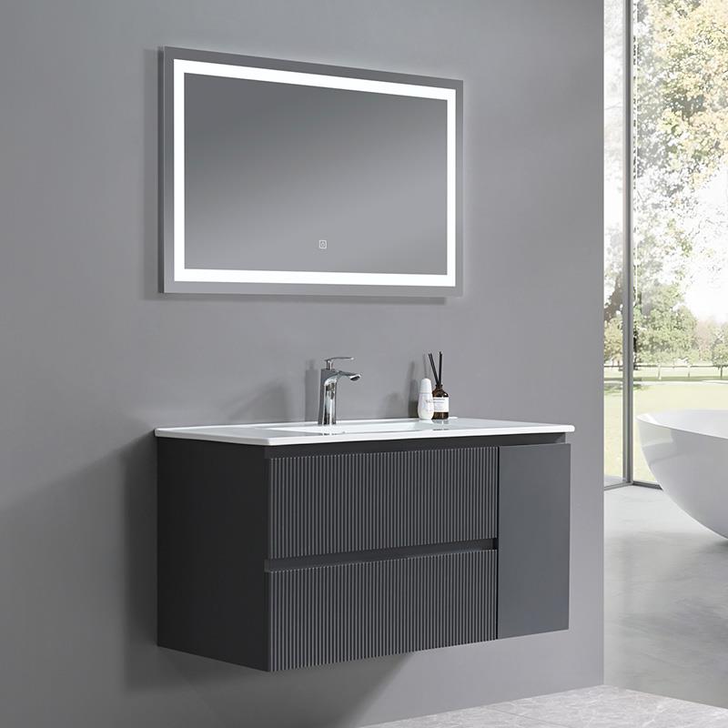 - Este conjunto consta de un mueble suspendido + espejo LED + lavabo.