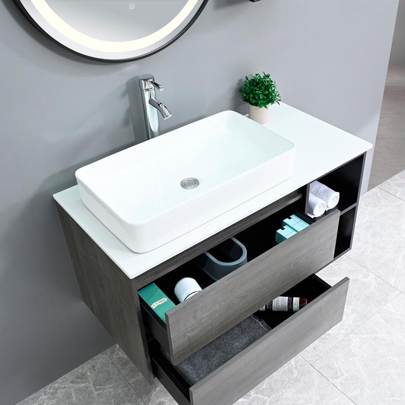 - Dos cajones con cierre progresivo y espacio adicional para el almacenaje de productos higienicos.