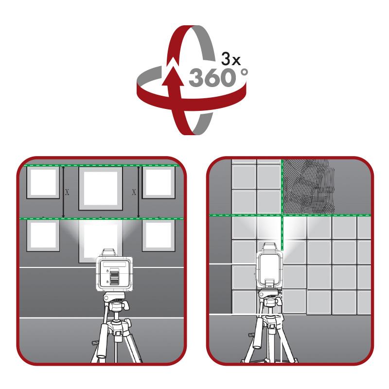 - Ancho de línea láser: 100 lux, 3 mm / 5 m.