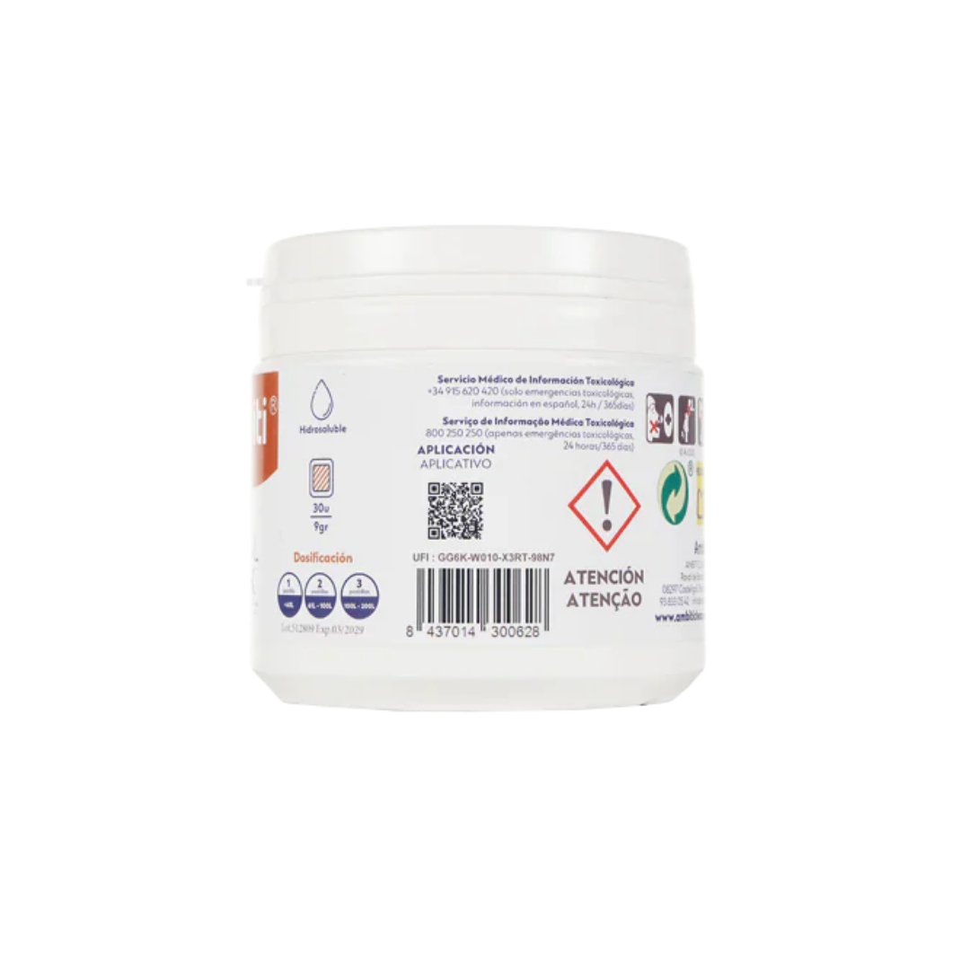 Ambiti Antical es una pastilla diseñada para eliminar la cal en los depósitos de agua. Disponible en un formato de 30 x 9 g, este producto facilita la eliminación de residuos calcáreos y asegura la limpieza y el mantenimiento eficaz de los depósitos.