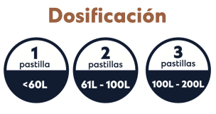 - Para Depósitos de Aguas Grises: Retire la pastilla de su envoltorio, diluir con agua en la pila de cocina o baño, una vez disuelta, abrir el tapón para que desagüe y dejar actuar unas horas.