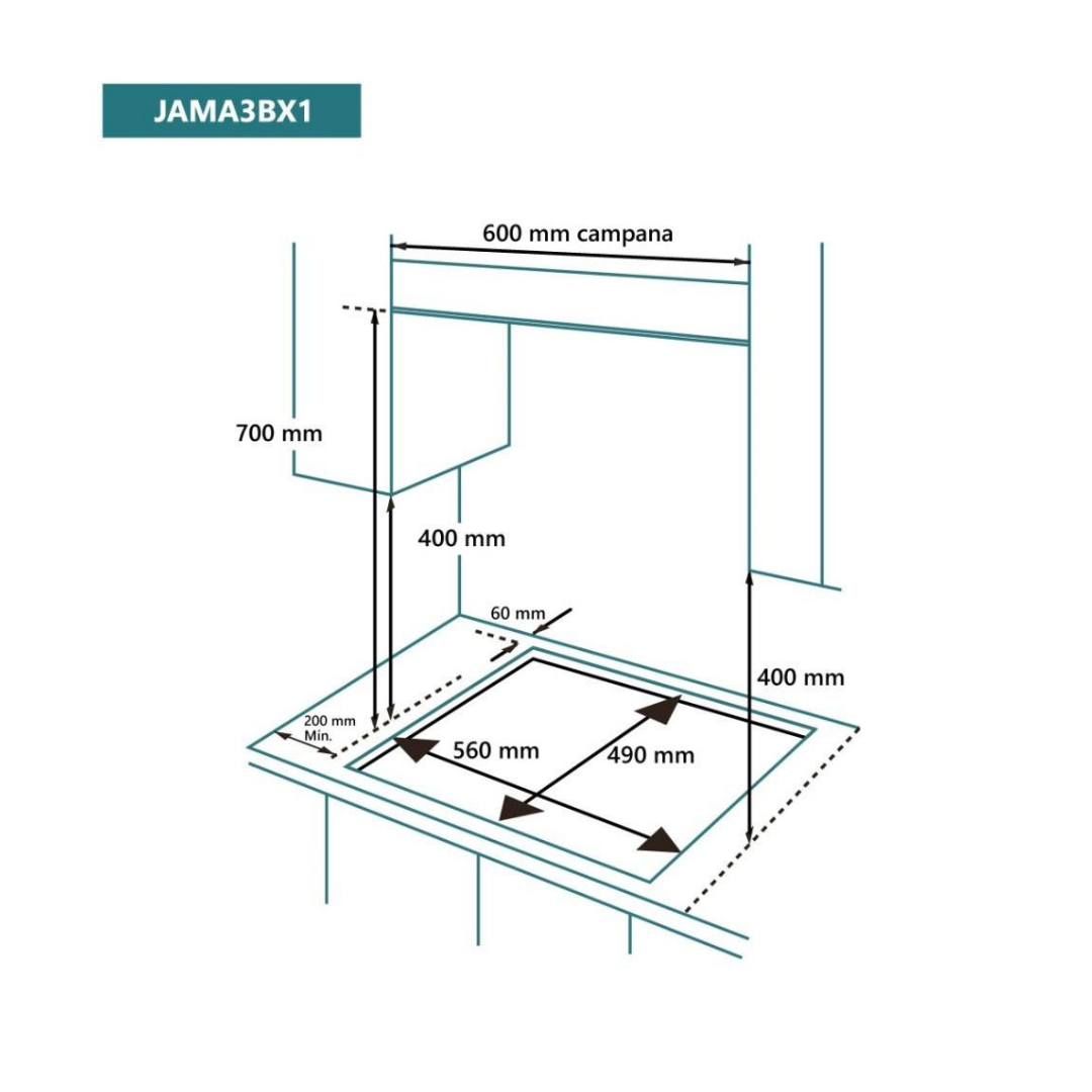 - Medidas de encastre: (Ancho/Fondo) 56 x 49cm