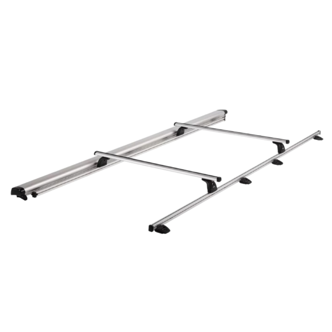 - Raíles base para barras de techo de fácil instalación en furgonetas en combinación con Thule Omnistor 6300 Pack.
