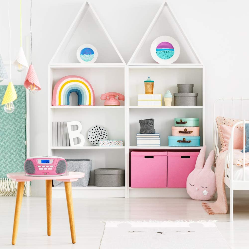 - Radio CD portátil Reproductor de CD’s de carga superior con óptica.