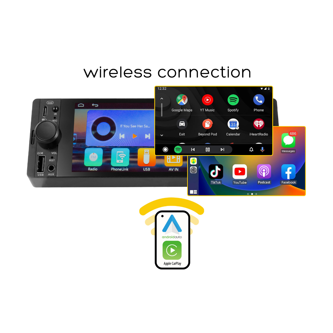 Gracias a la función Phone Link con modo Mirror, puedes reflejar la pantalla de tu smartphone directamente en la pantalla de la autorradio Trevi y, con las aplicaciones integradas Android Audio y Apple Car Play, tendrás acceso directo e inalámbrico a las funciones esenciales de tu teléfono de forma segura e intuitiva para navegar, llamar y escuchar música. Además, para tus llamadas telefónicas, la conectividad de audio inalámbrico te permite tener conversaciones claras y nítidas con manos libres.