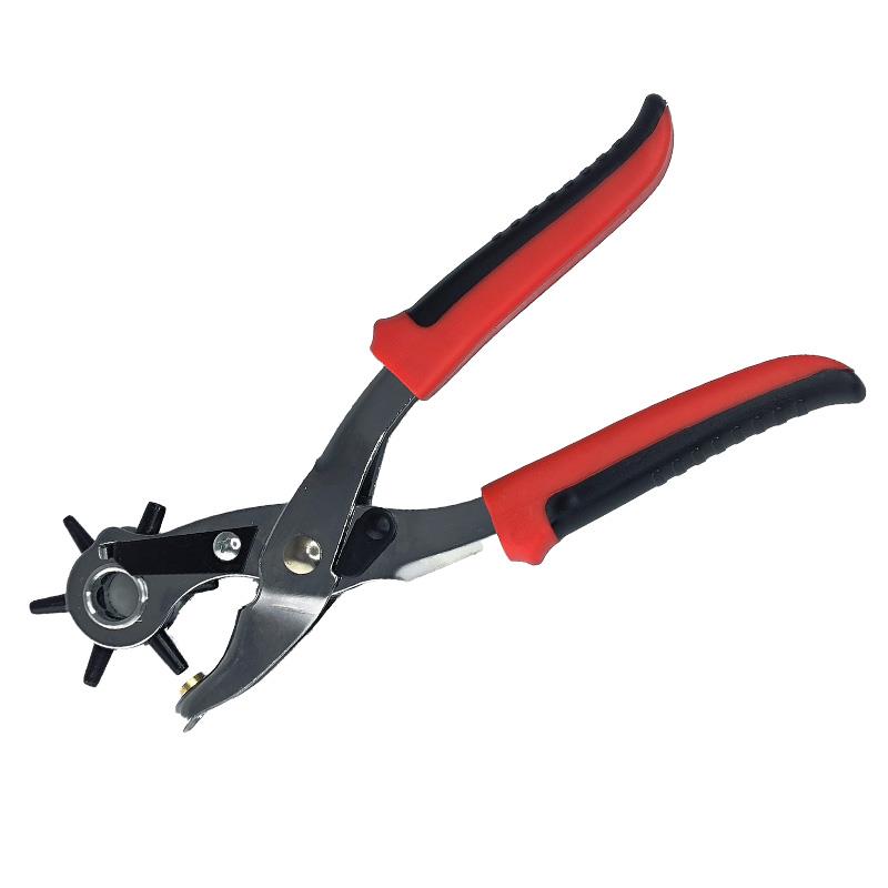 - Cabezales de perforación intercambiables que perforan agujeros limpios en cuero y otros materiales blandos.