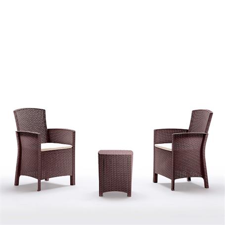 SET DE JARDIN 2 SILLONES + MESA SERIE LIDO BROWN BICA
