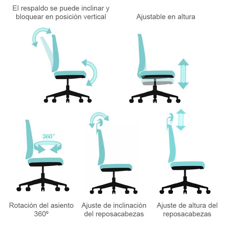 - El respaldo de la silla generalmente está diseñado para adaptarse a la curva de la columna vertebral, lo que puede proporcionar un buen soporte lumbar, garantizar que la columna pueda sostenerse adecuadamente en diferentes partes y ayudar a los usuarios a mantener una postura sentada natural.