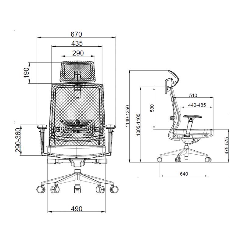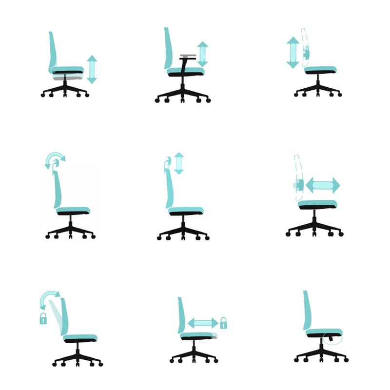 - Sistema de ajuste de tensión para ajustar la firmeza del respaldo.