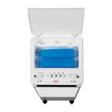 - Climatizador con tecnología de enfriamiento avanzada que toma el agua de su depósito para enfriarla y expulsarla, refrescando el ambiente rápidamente.